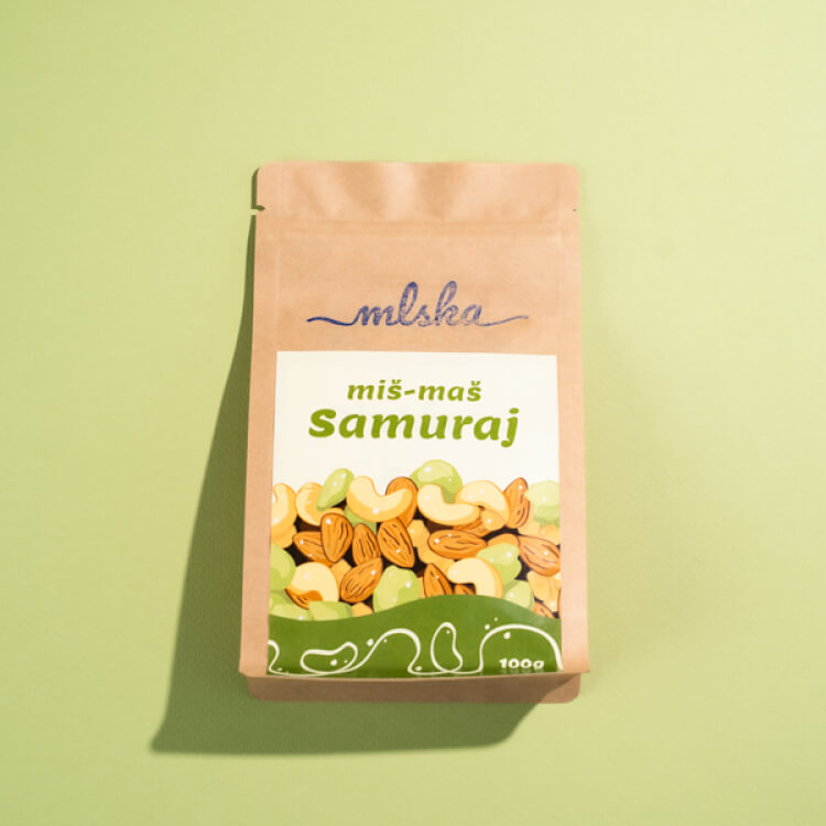 Tento mix nie je pre slabé jazýčky. Údené mandle dodajú dymovú hĺbku, pražené a solené kešu vnesú jemnú krémovosť, pizza arašidy Vás prekvapia slaným šmrncom a wasabi arašidy? Tie zaútočia ako pravý samuraj – rýchlo a ostro.